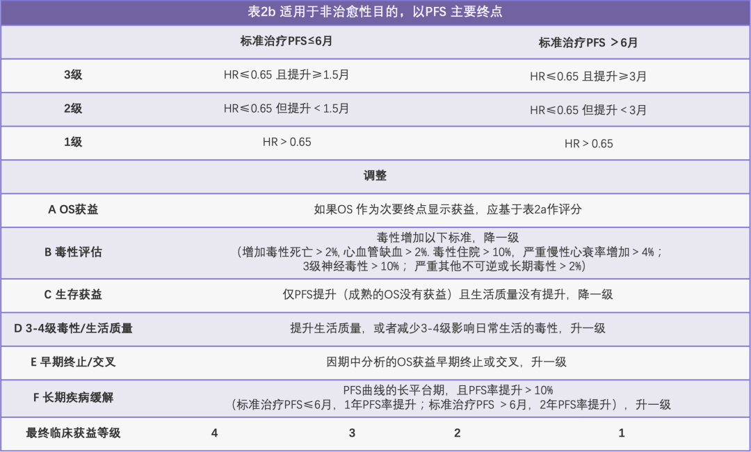 以PFS为主要终点的非治愈性治疗研究的ESMO-MCBS评估内容
