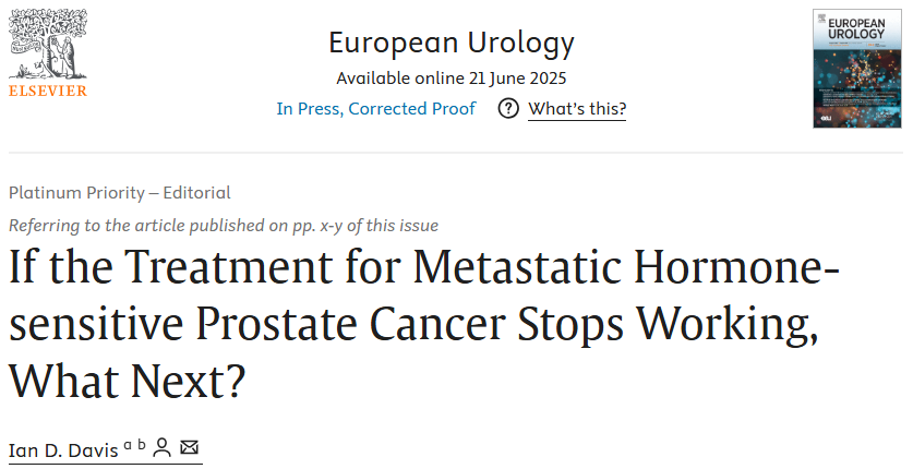 [1].Davis I D.If the Treatment for Metastatic Hormone-sensitive Prostate Cancer Stops Working,What Next?[J].European Urology,2025.