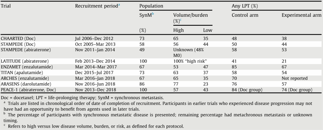 ▽转移性激素敏感性前列腺癌及后续生命延长治疗方案的关键研究