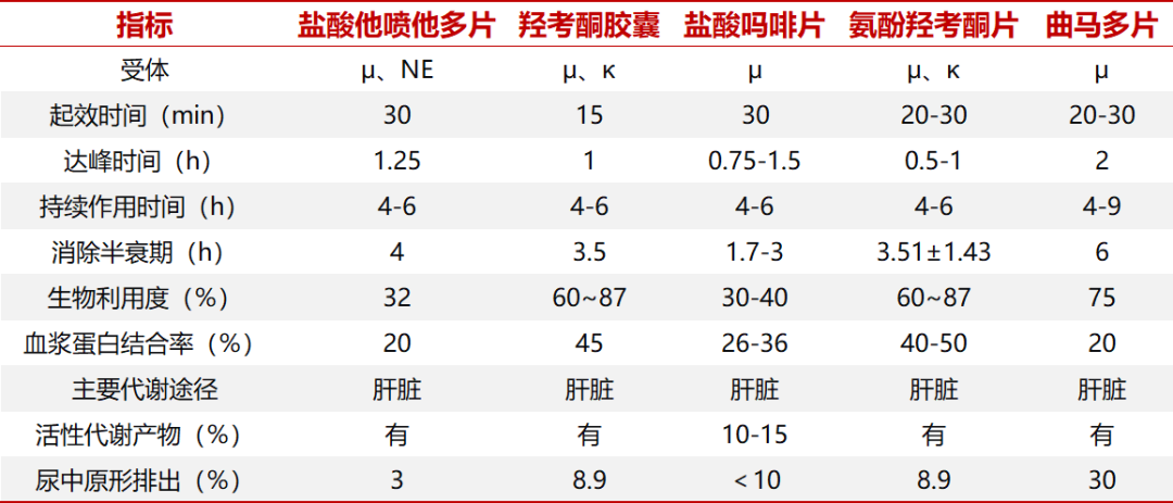 从药代动力学[3]角度看,口服后吸收迅速,30min发挥镇痛作用,1.25h左右即可达到血药浓度峰值,满足临床对疼痛“快速控制”的需求;持续作用时间为4-6小时;代谢主要途径是与葡萄糖醛酸共轭产生葡糖苷酸,口服后,约70%(55%的O-葡糖苷酸和5%他喷他多硫酸盐)剂量的药物以共轭形式经尿排泄,约3%的药物以原形经尿排泄。代谢产物无镇痛活性。他喷他多和其代谢产物几乎完全经肾排泄(99%)。口服给药后的终末半衰期平均为4h。