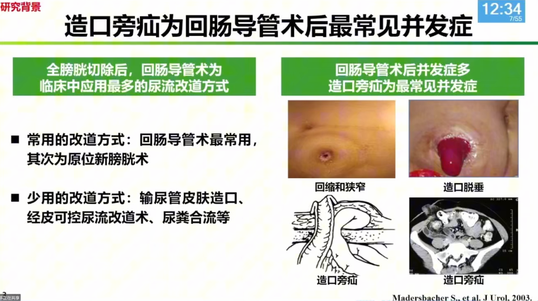 根治性膀胱切除术是肌层浸润性膀胱癌的标准治疗,但术后并发症,特别是回肠导管造口相关的并发症,长期困扰着临床医生与患者。刘卓炜教授指出,造口旁疝是较为棘手的并发症之一,其发生可持续至术后两年,严重时可导致肠梗阻,显著影响患者生活质量。