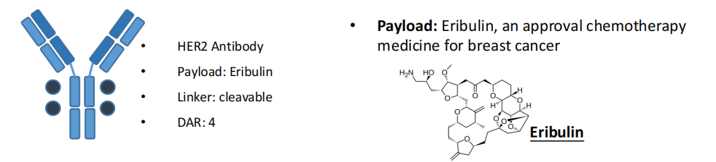 SMP-656是一款靶向HER2的抗体偶联药物,其创新性地采用了新型毒素艾立布林作为有效载荷,药物抗体比值为4,并基于亲水稳定的可裂解连接子进行偶联。在临床前研究中,该药物在多个模型中均展现出良好的抗肿瘤活性,尤其在DS-8201耐药的乳腺癌和胃癌模型中观察到了明确的疗效。