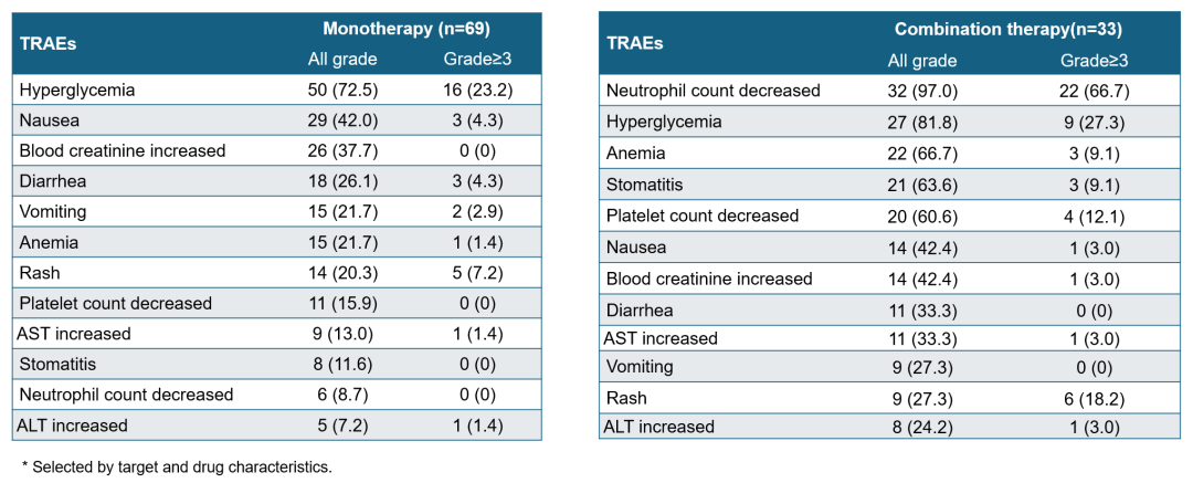 表3.单药治疗(左)和联合治疗研究(右)的TRAEs