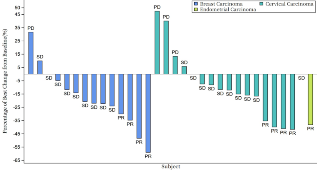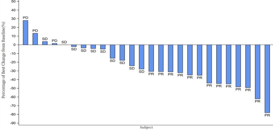 图2.单药治疗的肿瘤最佳缓解瀑布图(RECIST v1.1)