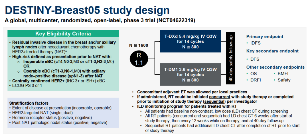 DB-05研究主要终点是BICR评估的IDFS;关键次要终点:DFS、DRFI、BMF、OS及安全性。