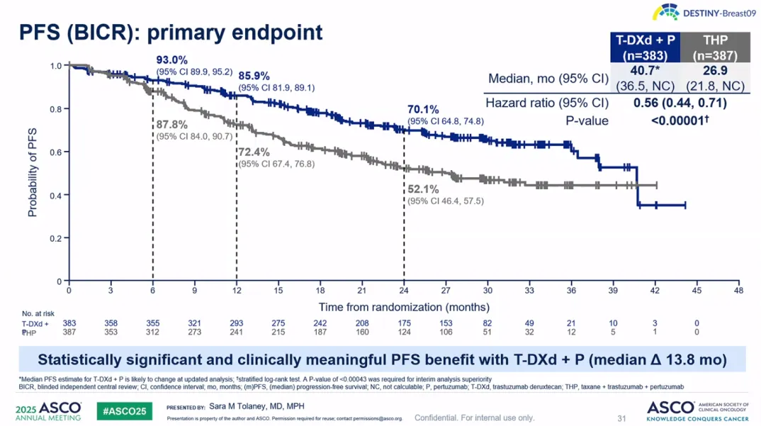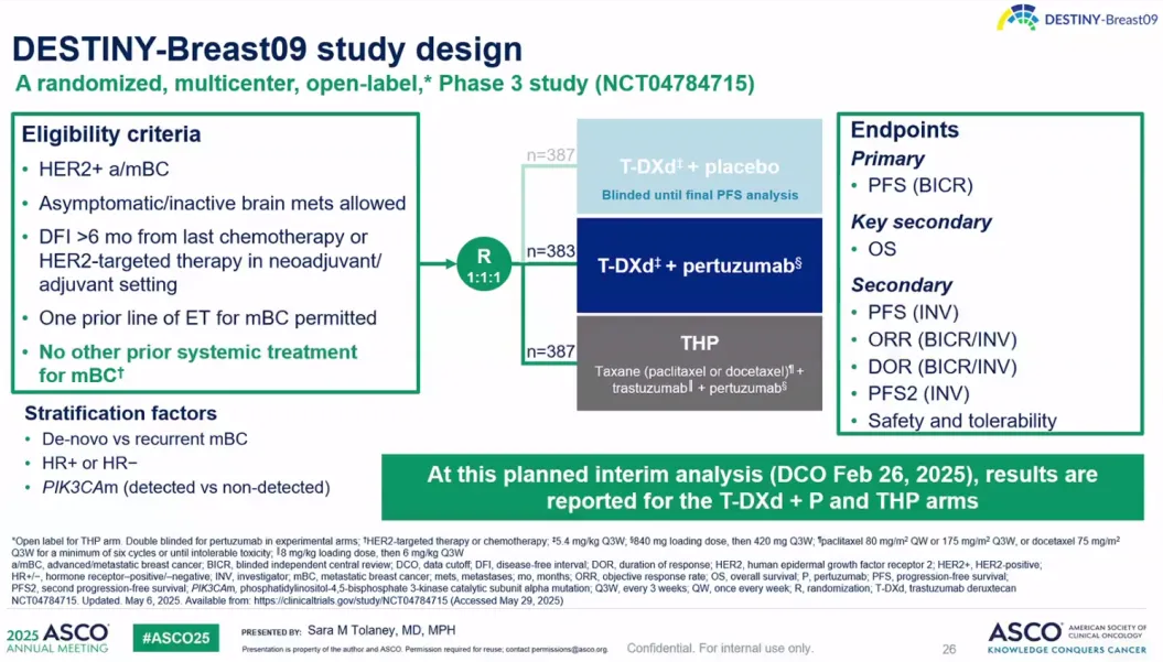 [3]Sara M.Tolaney,et al.Trastuzumab deruxtecan(T-DXd)+pertuzumab(P)vs taxane+trastuzumab+pertuzumab(THP)for first-line(1L)treatment of patients(pts)with human epidermal growth factor receptor 2–positive(HER2+)advanced/metastatic breast cancer(a/mBC):Interim results from DESTINY-Breast09.2025 ASCO LBA 1008.
