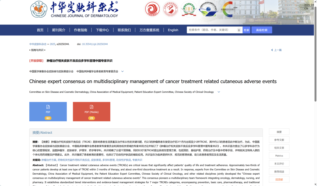 目前,共识原文已在《中华皮肤科杂志》官网(http://www.pifukezazhi.com/CN/10.35541/cjd.20250344?sessionid=)开放获取,患者及医护人员可登录查阅,获取权威指导。