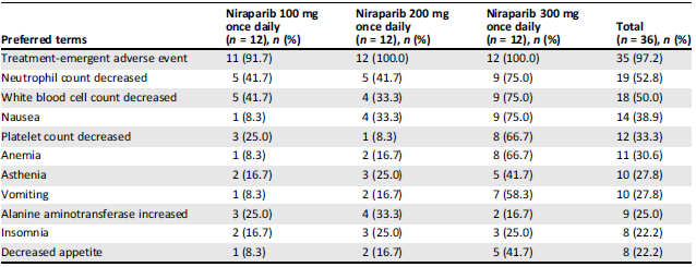 表3. 尼拉帕尼治疗相关的≥3级的不良事件
