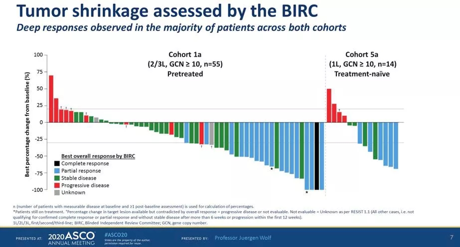 研究结论:Tepotinib治疗METex14+突变晚期NSCLC患者,约半数可以带来缓解。