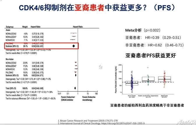 • CDK4/6抑制剂治疗亚裔、绝经前、年老和男性乳腺癌患者,获益与整体人群基本一致