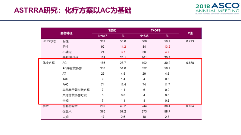 ASTRRA研究月经恢复结果之所以与IBCSG-IIIV研究不一致,主要是因为这两个研究的化疗方案不同,所以对卵巢功能损伤的程度不同。IBCSG-IIIV研究由于开展较早,使用的是当时标准的CMF方案,由于方案里的环磷酰胺非常容易造成卵巢损伤,所以化疗后月经较难恢复。而ASTRRA研究由于较新,使用的是与目前标准化疗一致的以AC为基础的方案,卵巢损伤较少。