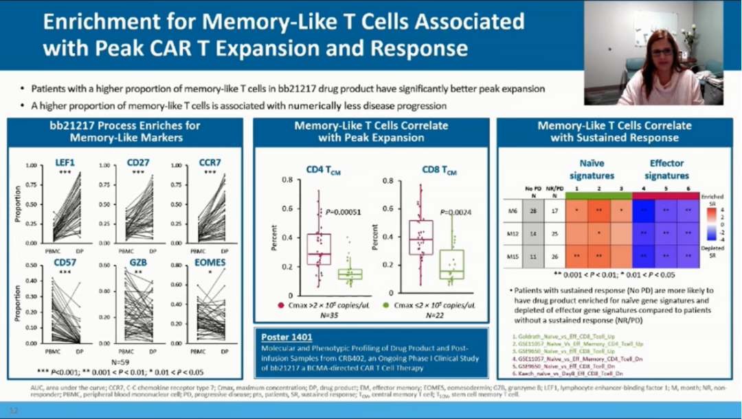 130 复发难治性多发性骨髓瘤病人的抗BCMA CAR-T细胞治疗bb21217 I期CRB-402研究的结果更新:治疗缓解持续时间和强度与T细胞表型的相关性