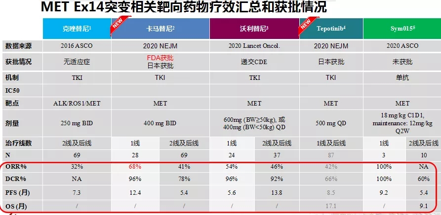 MET ex14跳突:Capmatinib获NCCN指南优先推荐,目前已在美国、日本上市;Tepotinib在日本获批上市,Savolitinib国内提交上市申请;