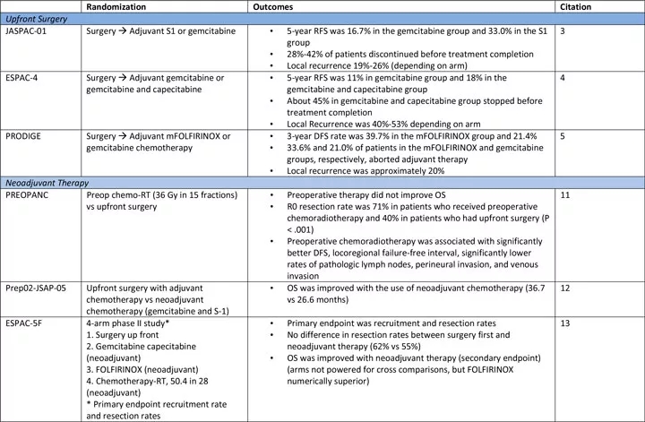 11.Versteijne E, Suker M, Groothuis K, et al. Preoperative Chemoradiotherapy Versus Immediate Surgery for Resectable and Borderline Resectable Pancreatic Cancer: Results of the Dutch Randomized Phase III PREOPANC Trial.J Clin Oncol . 2020;38:1763-1773.