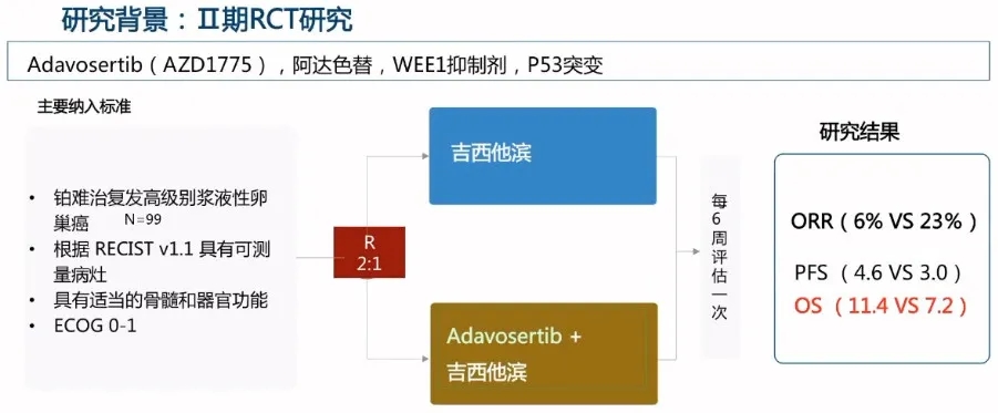 PARP抑制剂耐药后的去化疗:adavosertib单药或联合奥拉帕利对PARP抑制剂耐药卵巢癌患者均有疗效。