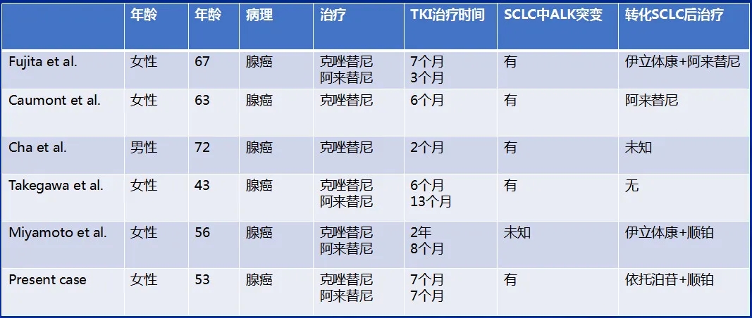 表2. 6例ALK TKI耐药转化为SCLC的病例报告