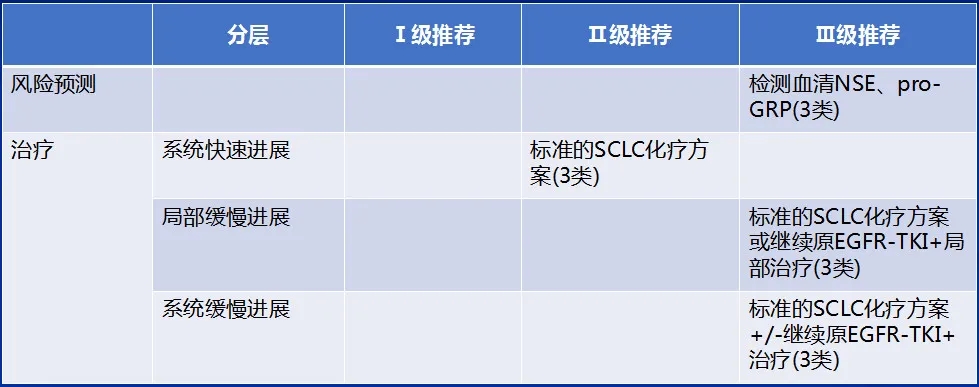 表3. CSCO指南对转化性SCLC的治疗推荐