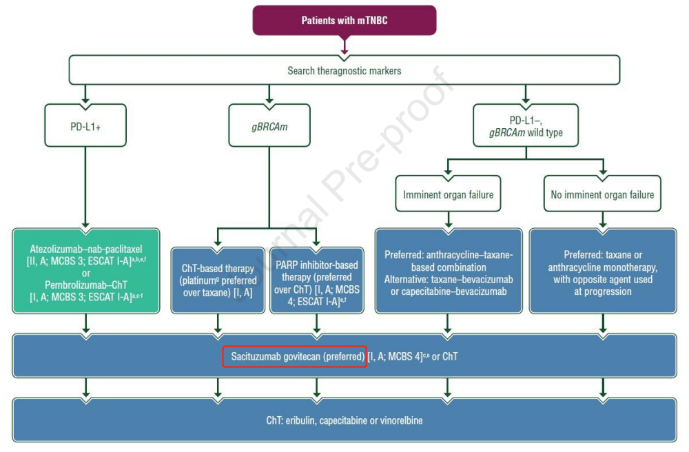 图2.ESMO-MBC指南mTNBC的治疗策略