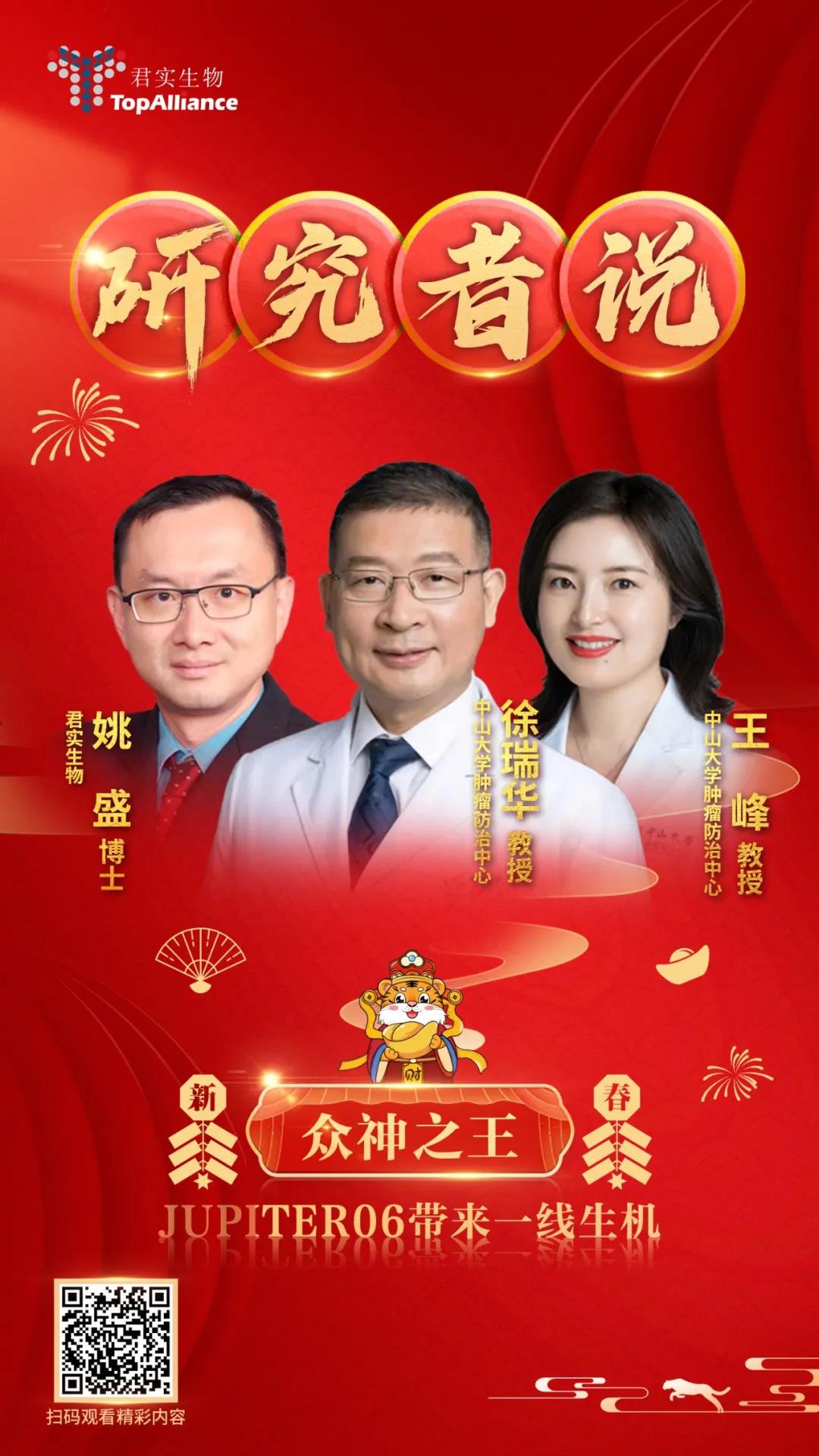 编者按:朱庇特(JUPITER)是古罗马神话的众神之王,手持雷电,呵护众生。JUPITER-06研究就像它的名字一样,以当下一线治疗冠绝群雄的生存期为晚期食管癌患者带来生存的希望。从药物的研发开始,到JUPITER-06的临床研究设计与执行,立足中国食管鳞癌高发特点,引领全球食管癌治疗前沿。In China,For Global!临床研究者与药物研发者的视线交汇,谱写不一样传奇。JUPITER-06 PI 中山大学肿瘤医院徐瑞华教授、中山大学肿瘤医院王峰教授,特瑞普利单抗研发者君实生物姚盛博士相聚“肿瘤瞭望·研究者说”,讲述众神之王的故事。