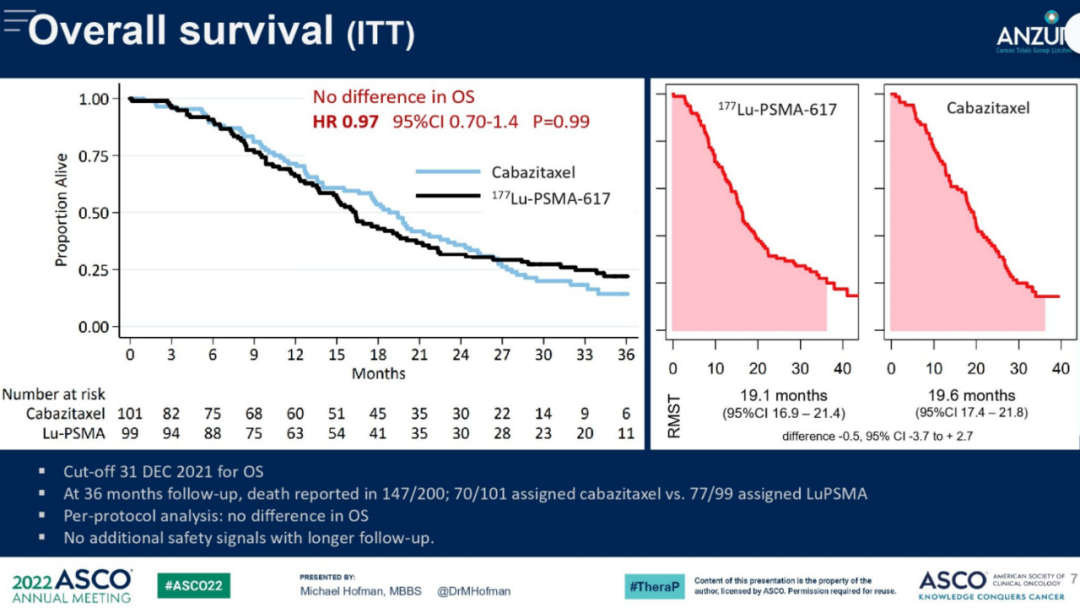 尽管2期TheraP研究中OS并没有显著获益,但3期VISION研究则显示有OS获益。是什么因素可能影响最终的OS结果?另外,您如何看待放射性配体疗法在前列腺癌中的应用?