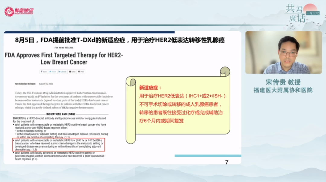 张莉莉教授(江苏省肿瘤医院):FDA批准T-DXd治疗HER2低表达乳腺癌,要求患者在晚期阶段接受过化疗,且并未明确限定内分泌治疗。8月18日,我国CDE正式承办了T-DXd的上市申请,您对中国的适应症有何期待?