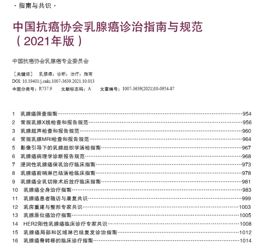 △《中国抗癌协会乳腺癌诊治指南与规范》(2021年版)