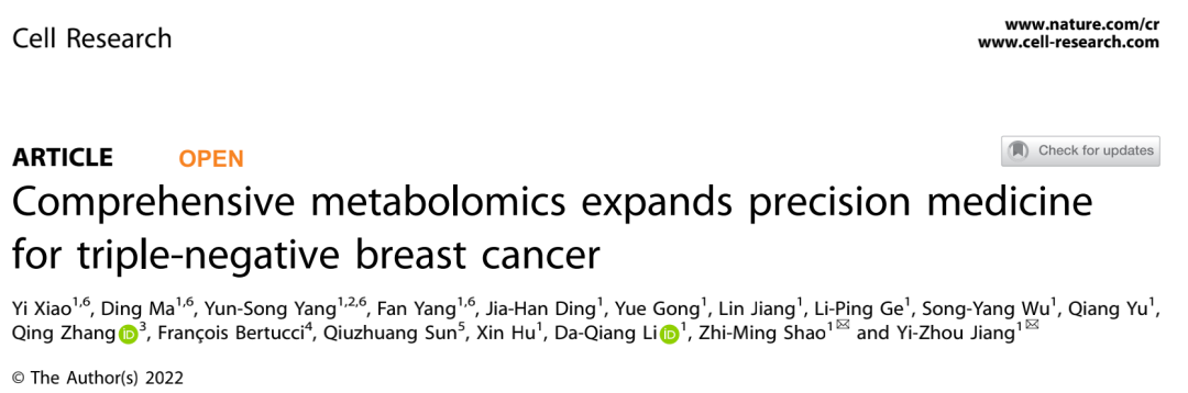 2019年在国际上率先绘制出了全球最大的三阴性乳腺癌多组学图谱,并据此提出三阴性乳腺癌“复旦分型”,将三阴性乳腺癌分为了4个不同的亚型:免疫调节型(IM)、腔面雄激素受体型(LAR)、基底样免疫抑制型(BLIS)、间质型(MES);并针对每个亚型鉴定了潜在的治疗靶点。
