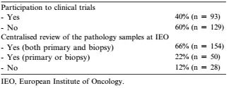 研究从机构临床数据库中回顾性收集了2014年1月至2020年12月期间,在意大利米兰欧洲肿瘤研究所新药和早期药物开发部门就诊的所有乳腺癌患者的临床和病理学数据。收集的数据包括患者的人口统计学特征、诊断时的疾病分期、原发肿瘤的肿瘤生物学特征和在复发/局部晚期或转移阶段进行的第一次(和第二次,如可用)肿瘤活检的病理学数据。当原发性肿瘤的术前肿瘤活检和手术标本的病理学检查均可用时,考虑使用手术样本进行分析。研究收集了(新)辅助和晚期阶段患者接受治疗的数据,以及无病生存期(DFS)、晚期阶段首次治疗的无进展生存期(PFS1)和总生存期(OS)方面的疾病结局。