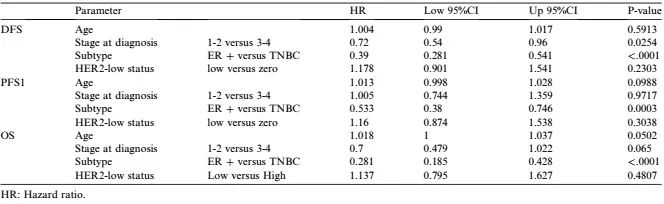乳腺癌从早期到晚期,肿瘤HER2低表达水平的变化