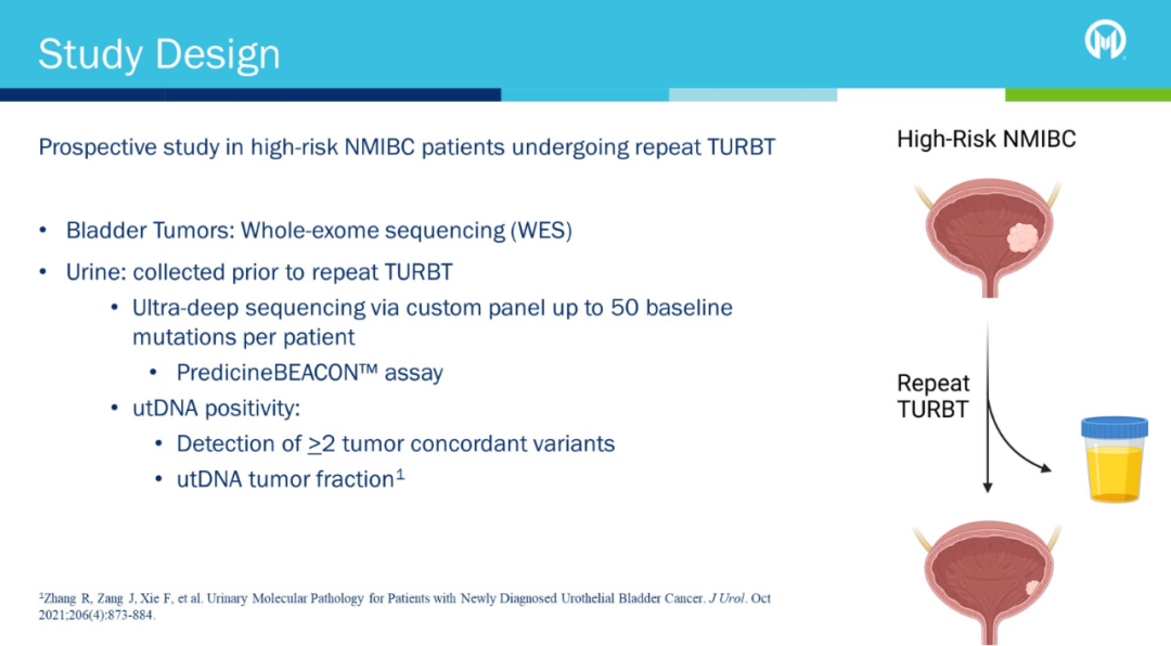 非肌层浸润性膀胱癌(NMIBC)患者在二次电切前采用尿液肿瘤游离细胞DNA进行微小残留病灶(MRD)检测:一项前瞻性研究(摘要号:LBA445)