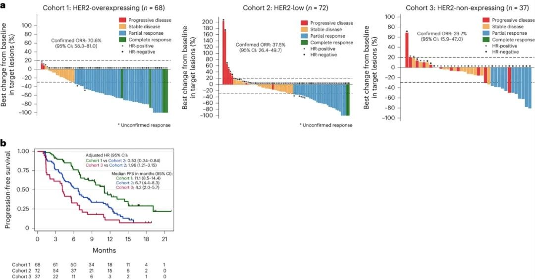 △DAISY研究不同HER2表达水平患者的最佳疗效和PFS