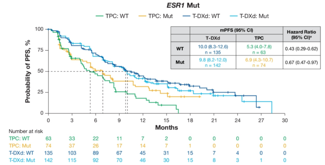 △DB-04研究探索性分析:不同PIK3CA突变和ESR1突变状态患者的PFS